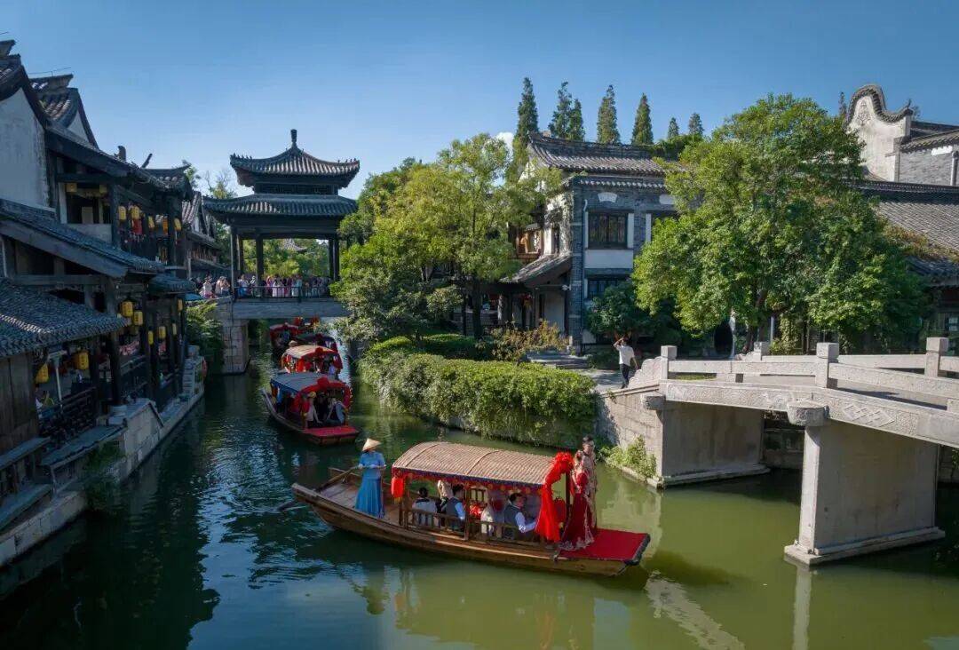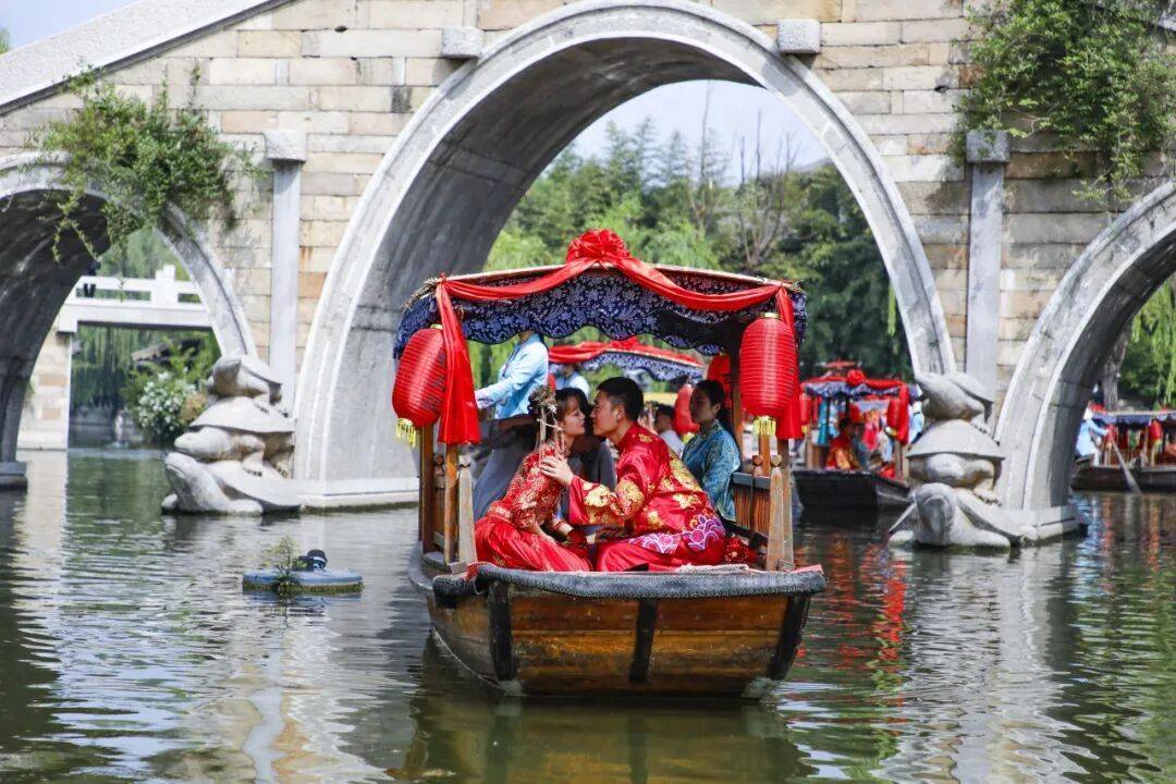 迎亲的花船挂上喜庆红灯笼,船头轻点,水波荡漾间,婚书的第一行就此写就。鼓乐在桥洞回响,两岸徽派木窗缓缓推开,百年前的月光洒落肩头。您牵着爱人的手,沿着 “水上红毯” 缓缓前行,凤尾裙轻扫青石,仿佛扫出细碎星光。那一刻,古城仿佛静止,唯有爱情在流淌,为您的婚礼增添了如梦如幻的诗意。